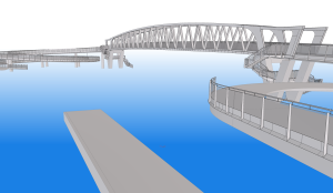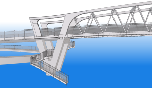 The new bicycle and pedestrian bridge will be a steel truss bridge with V-shaped abutments, a total span of about 63 metres between the abutment points and a bridge deck width of 3.7 metres. The new bridge will be located at the park. The bridge will have a clearance of seven metres, allowing ships with three layers of containers to pass underneath.