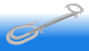 Vanaf de start van het project hebben we hier gekozen voor een parametrische aanpak. Dit heeft als voordeel dat we gedurende de looptijd en verschillende fases van het project gemakkelijk verschillende varianten en tracés kunnen bepalen en modelleren. Zo kunnen we ook snel de invloed van een ontwerp zien (qua hoeveelheden, uitzicht, landelijke inpassing, …) alsook het aanpassen van de geometrie is hierdoor geen probleem. De brug is parametrisch ontworpen met behulp van de softwareprogramma’s Rhino & Grasshopper. Dit model is gekoppeld aan het rekenmodel van SOFiSTiK maar ook aan Tekla Structures, Revit en Civil 3D.
