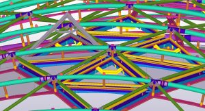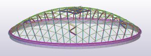 W projekcie kluczową rolę odegrało zastosowanie oprogramowania Tekla Structures, które znacznie usprawniło cały proces projektowania, produkcji oraz montażu konstrukcji. Dzięki zaawansowanym funkcjom tego narzędzia, w szczególności komponentom parametrycznym, możliwe było stworzenie bardzo dokładnego modelu 3D kopuły, co miało istotny wpływ na efektywność realizacji projektu. Tekla Structures umożliwiło pełną synchronizację między projektem a procesem produkcyjnym, dzięki czemu montaż przebiegł sprawnie i zgodnie z harmonogramem.