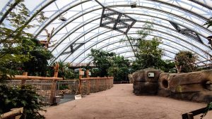 Meranti-Halle is a modern tropical pavilion at Allwetterzoo Münster in Germany, which opened in June 2023. It was designed as an eco-friendly educational and recreational facility where visitors can admire over 15 species of exotic animals. The hall has an area of 2500 m² and a height of 20 meters, and its structure includes a steel dome with a suspended ETFE foil covering that ensures optimal lighting and thermal conditions.