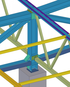 Main pillars as prefabricated reinforced concrete elements . Roof, platforms and shelter in steel construction. The scope realized in Tekla included a workshop design of steel elements.