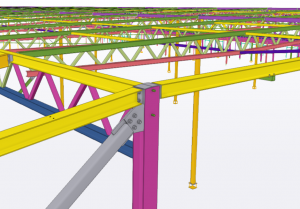 Aby maksymalnie zoptymalizować nie tylko tonaż konstrukcji, ale również czas jej realizacji nasz zespół projektowy podszedł do projektowania statecznie. Zastosowaliśmy powtarzalność elementów konstrukcji stalowej, aby ułatwić pracę również działowi produkcji i montażystom.
