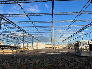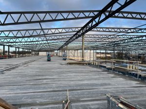 Na prezentowaną konstrukcję stalową składają się, między innymi, uniwersalnie zaprojektowane iteracyjne kratownice, sztywna tarcza dachu oraz belki podstropowe wykonane z profili gorącowalcowanych HEB 900. Ściany systemowe zostały oparte na stali drugorzędnej.
