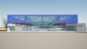General information: Structural Steel – 326893kg; Painting – 5672m2; Gross Area – 1500m2; Glass Area – 1998m2.