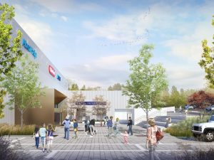 The Ring Shopping Centre in Kortrijk dates back to the 70s and was in need of a thorough upgrade. The new modern look, designed and visualised by Abscis Architecten, is created by new entrance areas, higher facades, covered passageways, rest areas and an events plaza. The result is a tighter entity in a pleasant green setting.