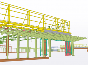 De verschillende opmetingen van de bestaande toestand werden samengevoegd in een globaal Tekla-model, waarin de staalstructuren zijn gemodelleerd. Zowel de productie in het werkhuis als de montage op de werf worden aangestuurd vanuit het 3D-model.