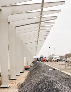 In opdracht van de hoofdaannemer JURI werden de staalstructuren, uitgewerkt in Tekla Structures, geproduceerd en gemonteerd op de werf.