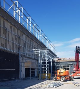De complexiteit van het project zat vooral in de verschillende fases: bestaande betonstructuur binnenin opmeten, hierop de nieuwe staalstructuur uitlijnen, bestaande gevellijnen volgen, … .