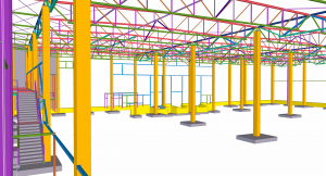The main structure of the designed building are prefabricated reinforced concrete columns, on which the steel roof structure is based in the form of girders and purlins.
