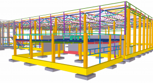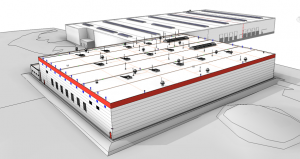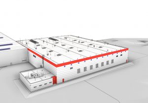Prezentowany model jest konstrukcją rozbudowy budynku produkcyjno-magazynowego o budynek magazynowy oraz budynek szatni.