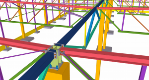 Wyzwanie stanowiło ukształtowanie geometrii budynku przy istniejącej hali w taki sposób, aby uniknąć wszelkich kolizji i zapewnić możliwość wykonania oraz montażu wszystkich elementów. Dodatkowo należało przewidzieć możliwość rozbudowy budynku w osi „20” bez konieczności wyłączania jakiejkolwiek części hali z użytkowania.