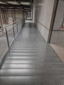 Inboco NV was verantwoordelijk voor het volledige ontwerp, de fabricage en installatie van het staalwerk binnen het project, met een focus op trappen, spiltrappen, leuningen, handgrepen en zware HEB900 liggers voor het platform in het centrum van de productieruimte. Deze elementen waren essentieel voor zowel de functionaliteit als de esthetiek van het gebouw.