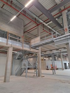 Inboco NV was responsible for the complete design, fabrication, and installation of the steelwork within the project, with a focus on stairs, spiral stairs, railings, handrails, and heavy HEB900 beams for the platform in the center of the production area. These elements were essential for both the functionality and aesthetics of the building.