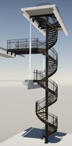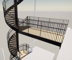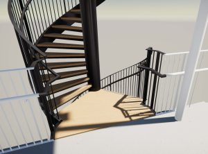 Bij de Politie in Utrecht hebben we in een bestaand pand een spiltrap gemaakt. Allereerst hebben we met een total station de bestaande vloeren ingemeten, vervolgens hebben we trap in Tekla uitgetekend en laten berekenen. In de bovenste vloer zat nog geen sparing. Hiervoor hebben we een constructie aangebracht, zodat er een sparing in de bovenste vloer gemaakt kon worden. Vervolgens hebben we de trap geproduceerd en gemonteerd in het werk. De trap is een combinatie van staal en hout.
