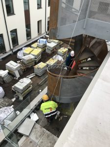 Dodatkowym wyzwaniem było ukształtowanie geometrii schodów w taki sposób, aby możliwy był ich transport na budowę.