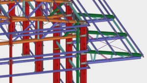 All profiles, connections and bolts are represented with full accuracy. The colours specify the material types and the thicknesses of the elements which helps the assembly team to be guided fluently through the whole process.