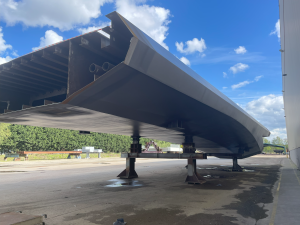 Środkowe ruchome przęsło mostu zapewni możliwość płynnego ruchu rzecznego.