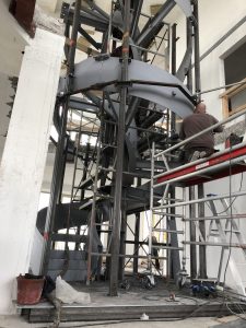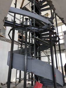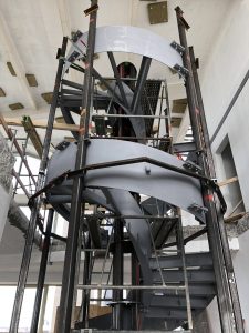 The spiral staircase weighs only 4.2 tons in total, but had to be divided into different parts. These parts had to be lifted to the top of the penthouse and brought in through a narrow opening on the roof of the building. After the lifting, the different parts were welded together in the penthouse. The relation between the parts were preserved with mounting couplings.