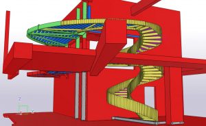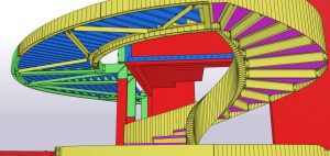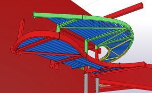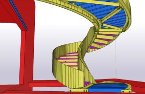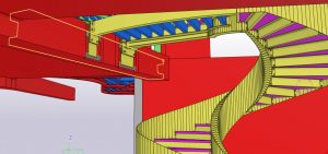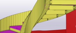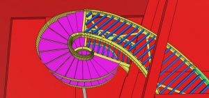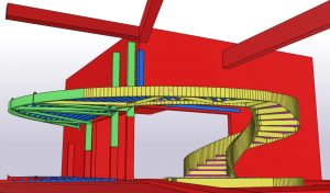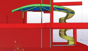 Het was zeer belangrijk om voor dit project BIM toe te passen, gezien de nieuwe trap en de verschillende niveau’s in een bestaand gebouw moesten passen. Er werd o.a. een zeer zware ligger vrijgemaakt van beton en opgemeten, om daarop de trap aan te sluiten. Vervolgens werd het model gebruikt om de torsing van de trap te kunnen vertalen naar uitvoerbare tekeningen, uitslagen van platen en het monteren van de constructie.