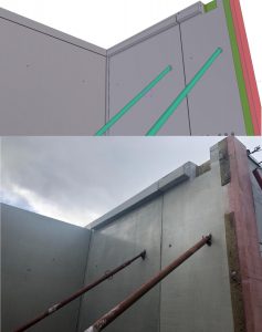 Basement structure is made out of cast in situ concrete walls and columns placed on piles due to direct contact with Ålesund bay and harbor. All elements above ground level are precast and manufactured in local Spenncon factory in Hjørungavåg, designed in CES Polska in Łódź. Distinctive elements are in-mass coloured concrete facades of very modern and aesthetic shape. Thanks to BIM technology and constant sharing of IFC models between subcontractors on online platforms we were able to design those elements up to the finest details to make assembly of LED lighting and electrical sun blinds possible.