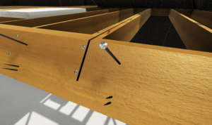 Na het maken van de element tekeningen en zaaglijsten, bleek het zagen van alle houten balken lastiger dan gedacht. Er is toen besloten om dit middels een CNC machine te laten uitvoeren. De elementen konden hierdoor als legoblokjes in elkaar worden geplaatst. Na afstemming met de montage ploeg ging ook de montage van de elementen uitstekend.