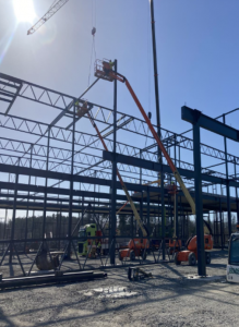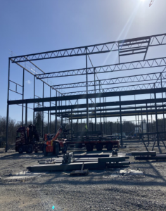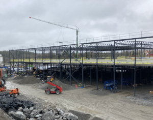Project of logistic centre situated in Stockholm. The main steel structure consists of five 22,5m long trusses connected to the 16,0m high RHS columns. The building is full of secondary steel – gates, loading docks, doors improving logistic of this warehouse. The warehouse will be put into use in 2022 and will provide a workplace for 1000 people with offices, warehouses, changing rooms, gym and a restaurant for employees. Total weight of steel: ~ 1200 tons. Area: 32000 m2