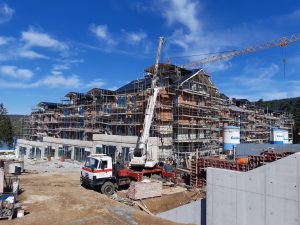 The apartment house is located near the Lipno reservoir. Reinforced concrete load-bearing structure on the upper floors combined with masonry walls. The building has 5 floors above ground and parts up to 2 underground floors. The roof consists of a steel-wooden purlin truss. Above the last balcony is a steel awning structure.