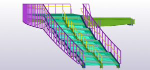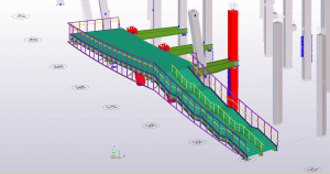 – mivel a lépcső előregyártott vasbeton pillérekhez kapcsolódik így gondoskodni kellett a megfelelő állíthatóságról ami a vasbeton szerkezet méret pontatlanságából adódhat itt a kivitelezéssel tartottuk a kapcsolatot mely során helyszíni méréseket kaptunk a pillérek pozíciójáról