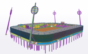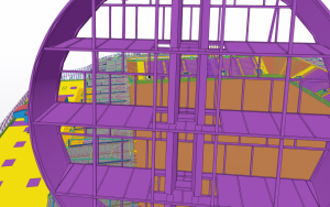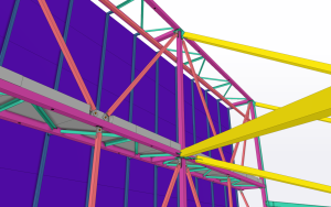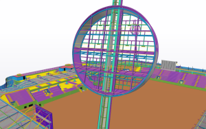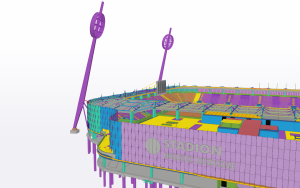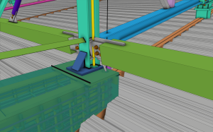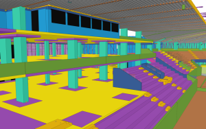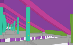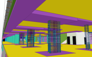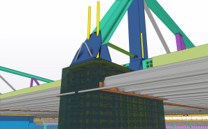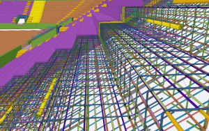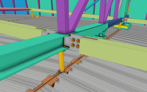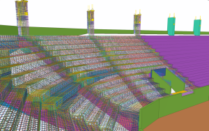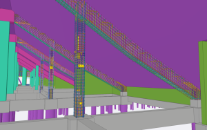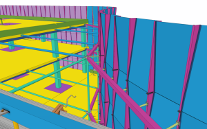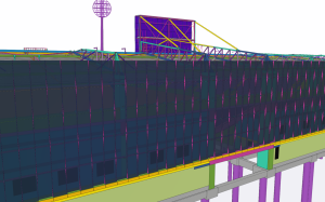 C) Ocelové i železobetonové konstrukce byly modelovány v programu TEKLA Structures firmou SKÁLA & VÍT, s.r.o. v jednom společném modelu. Díky tomu byla zajištěna koordinace ocelových a železobetonových konstrukcí v místě napojení na sebe.