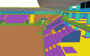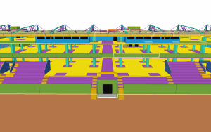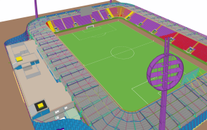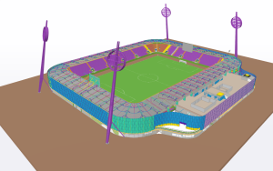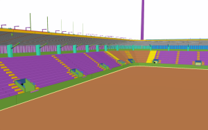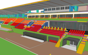 Stadion byl již ve studii rozdělen do tří základních částí.