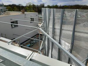 Between the posts there are attached metal angles of bent sheet which carry expanded metal sheets with a maximum filling ratio of 50%.