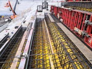 C) Steel and reinforced concrete structures were modeled in the TEKLA Structures program by SKÁLA & VÍT, s.r.o. in one common model. Thanks to this, the coordination of steel and reinforced concrete structures at the point of connection to each other was ensured.