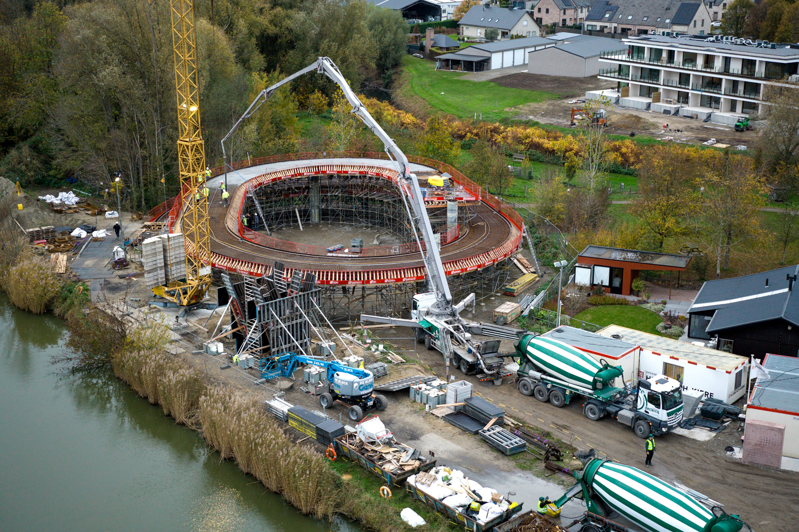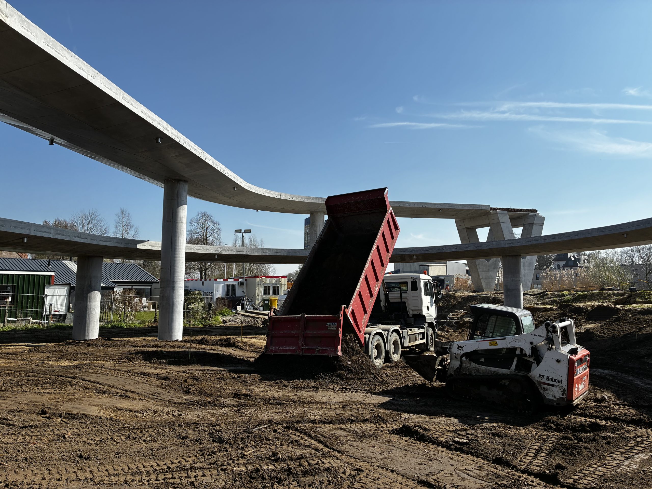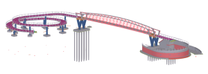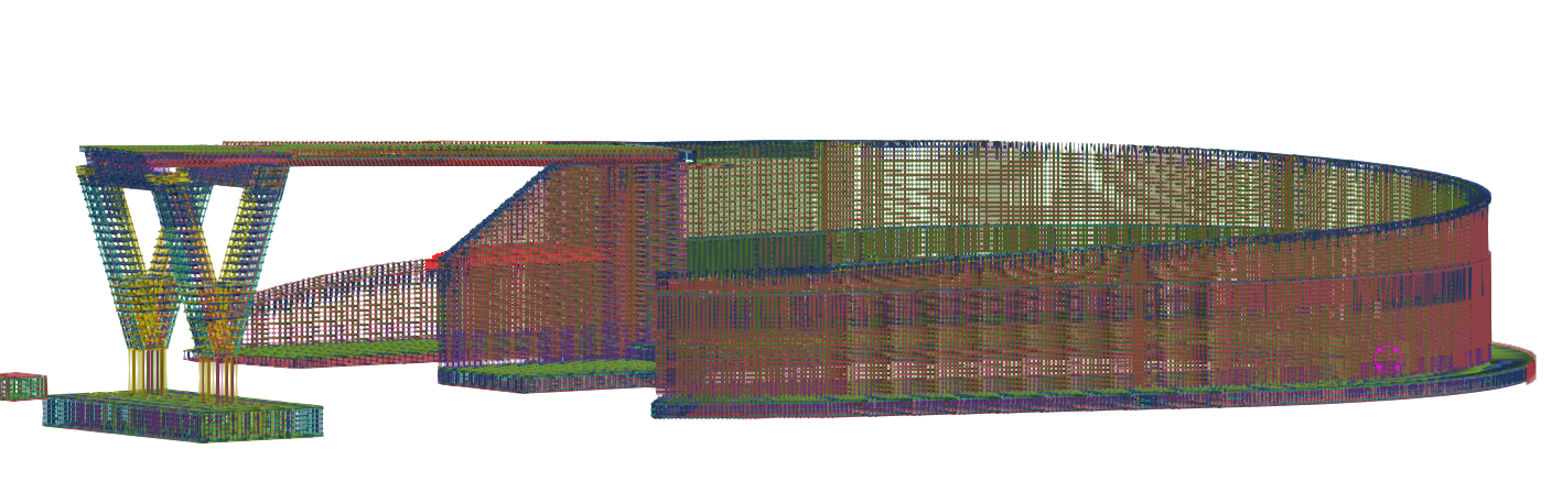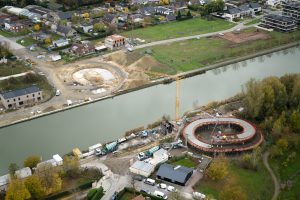 The design is characterized by curved concrete approach ramps, V-shaped piers and a steel cycle bridge, making the bridge visually striking as well. Loop-shaped approach ramps are used to minimize space usage while keeping the gradient as low as possible. The construction works for this cycle bridge are carried out by Herbosch-Kiere and CSM Steelstructures on behalf of De Vlaamse Waterweg. MULTI.engineering was commissioned by Herbosch-Kiere for the execution dossier and the complete 3D modelling of the concrete structures of the cycle bridge.