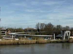 The Lysbrug in Ingelmunster is a new cycling and pedestrian bridge over the Roeselare–Leie canal that creates a safe and high-quality connection between both banks. The bridge has a span of 63 meters.