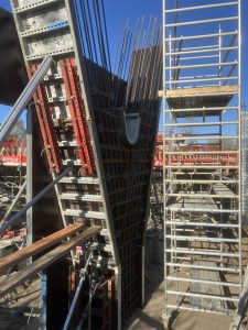 In parallel, the steel bridge was developed by CSM in Tekla. This structured BIM collaboration ensured smooth coordination between the concrete and steel structures. On site, Trimble Connect was used to review the reinforcement and to verify the positioning of the dowels at the bridge.