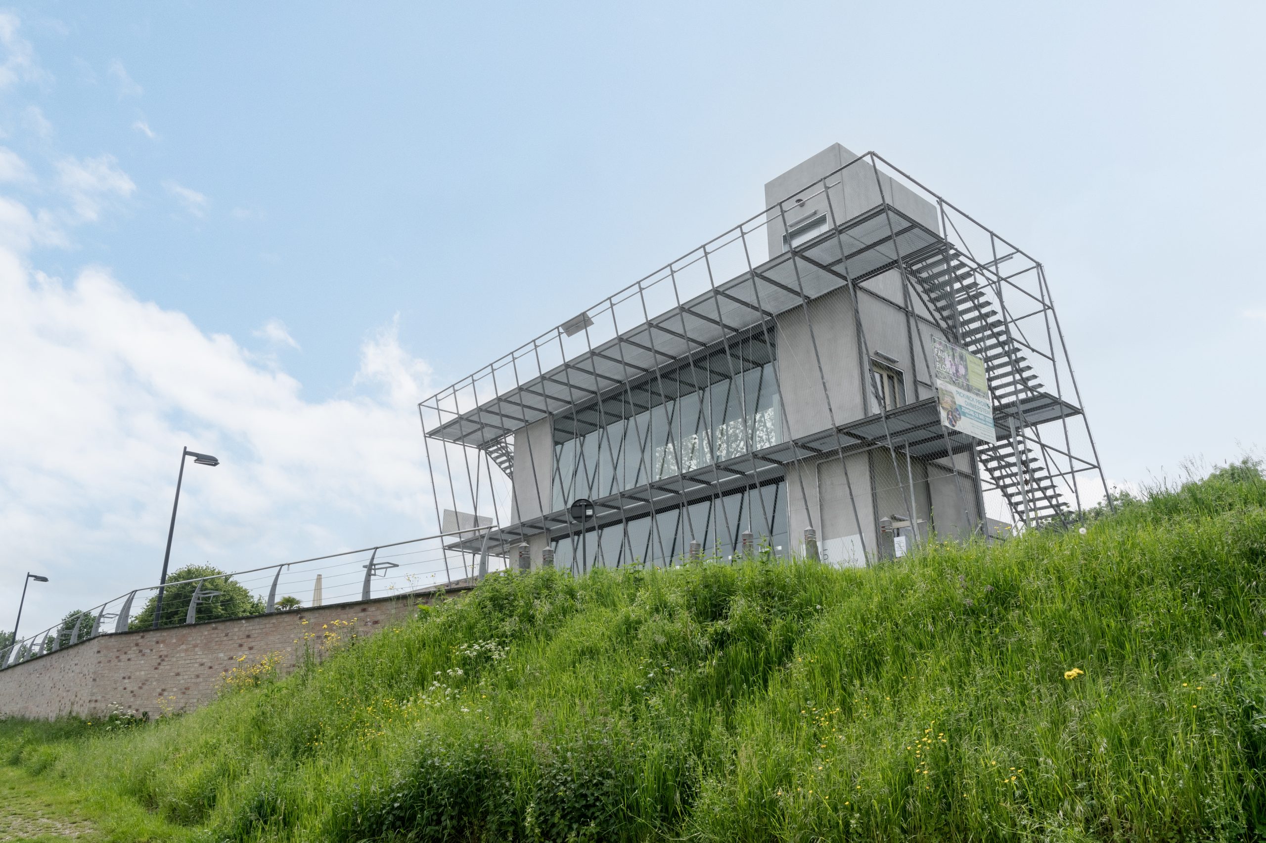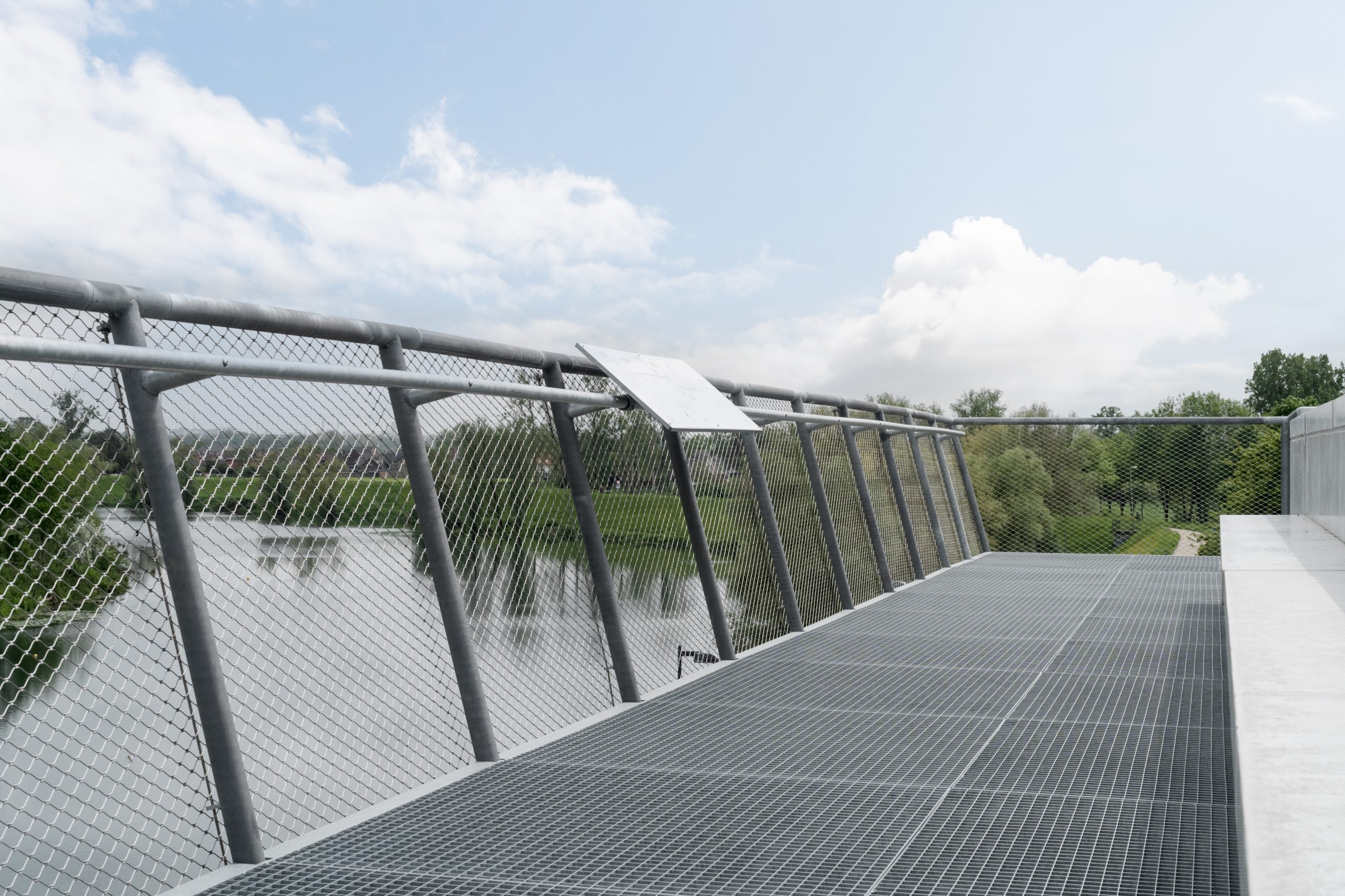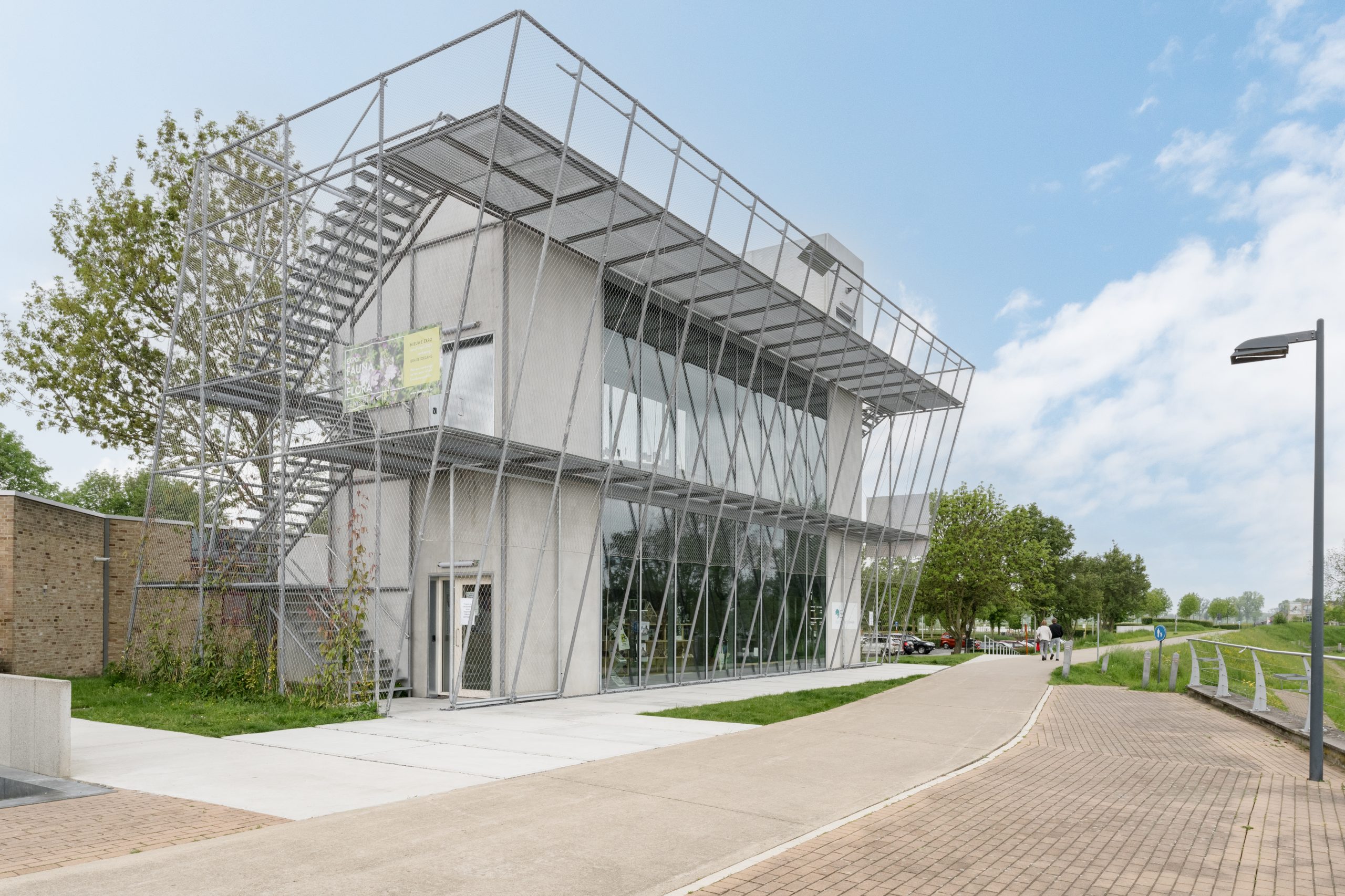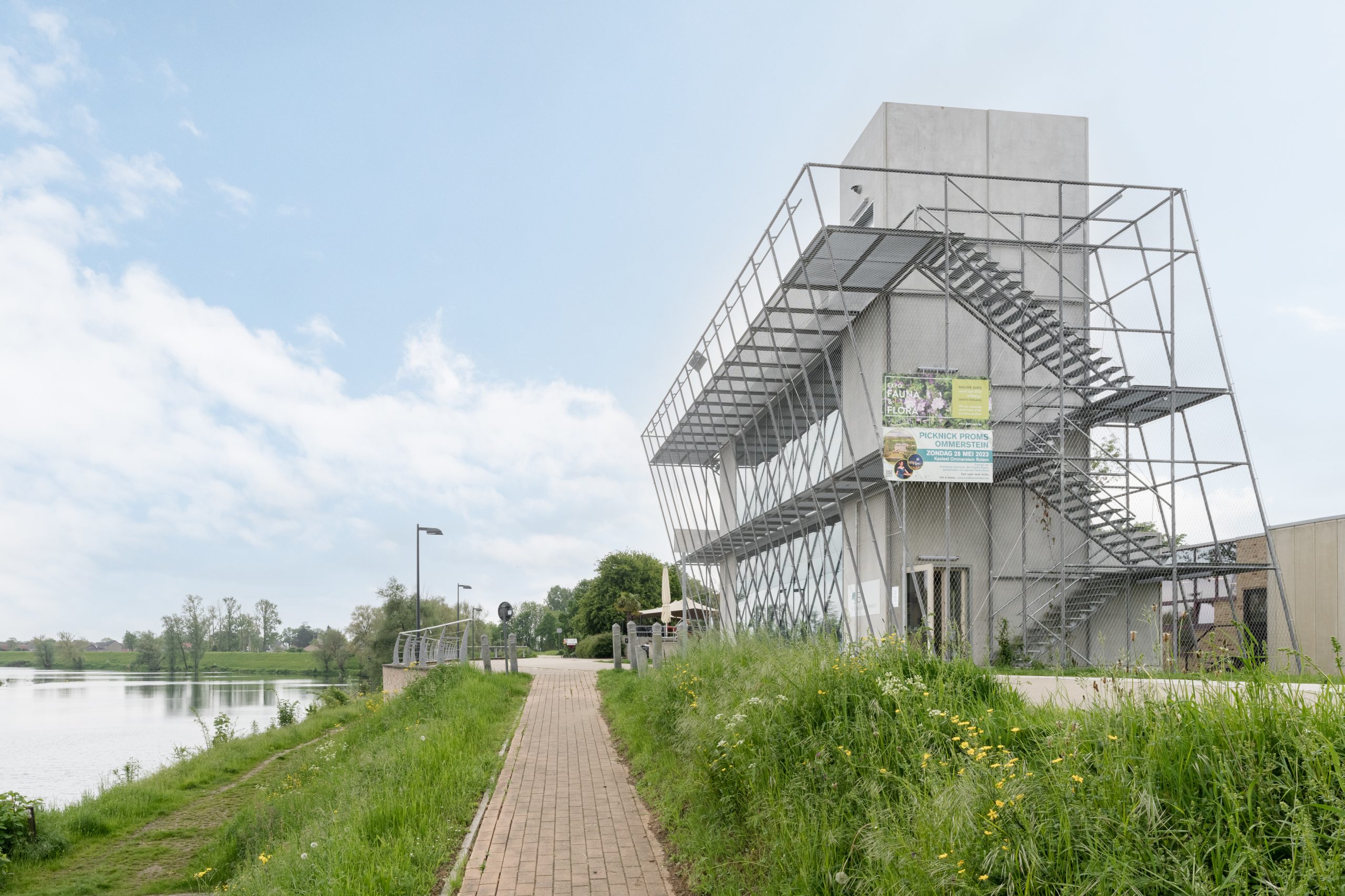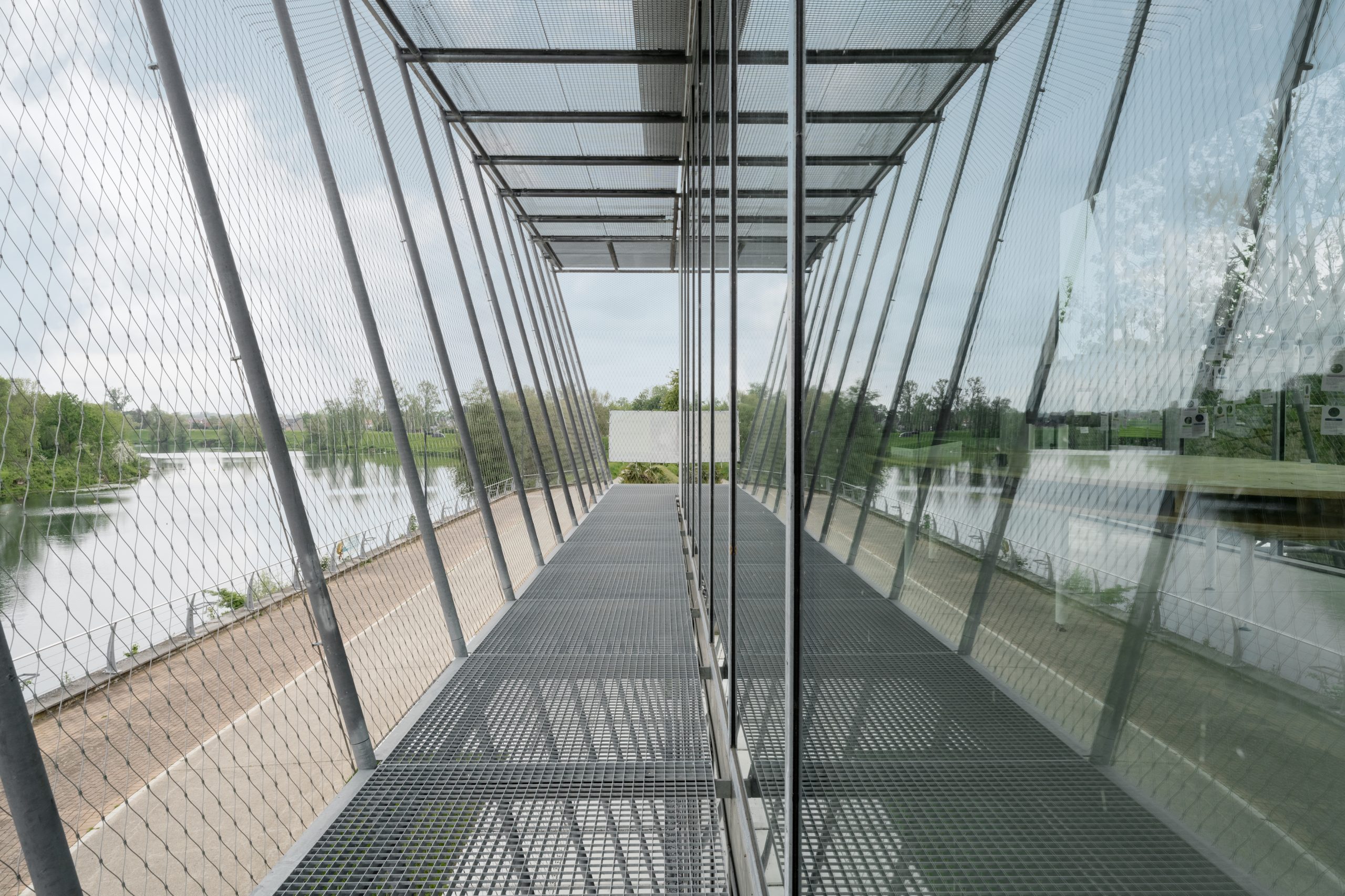 For Visitor Center ‘De Wissen’, located in Dilsen-Stokkem, Wuco provided the steel structure wrapped with stainless steel cable mesh, the two access staircases with lockable access gates and the viewing platform that offers a panoramic view of the beautiful Maas valley. Thanks to the installed climbing plants against the cable mesh, the back of the building will visually blend into its surroundings.