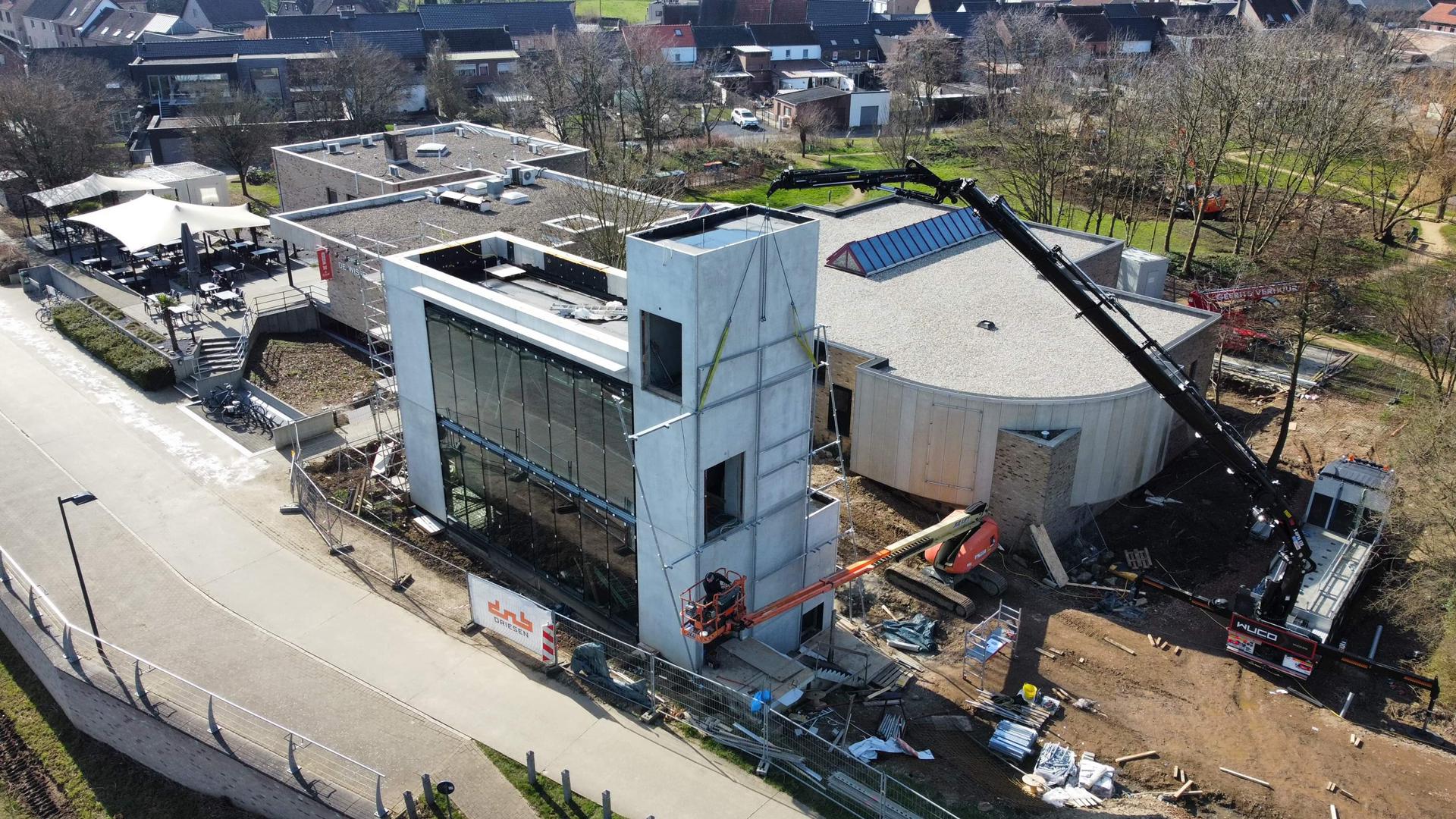 De indrukwekkende stalen structuur rondom het bezoekerscentrum versterkt de architecturale uitstraling van ‘De Wissen’ op een unieke manier. Door zijn openheid en verfijnde detaillering laat de constructie het gebouw ademen in zijn omgeving, terwijl de uitkijkplatformen bezoekers een panoramisch zicht bieden op het omliggende natuurgebied. Het resultaat is een visueel krachtige én functionele toevoeging die het gebouw letterlijk op de kaart zet binnen het landschap.