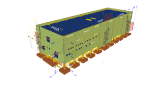 • Total area of 4.800 m² with a footprint of 1.500 m², divided into 2 separate blocks by a structural joint and 3 floors, with a total height of 18 m;