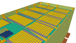 .Através da exportação de ficheiros .pxml foi possível produzir as malhas dos painéis em máquinas automáticas, que produzem as armaduras a inserir nos painéis com as geometrias corretas, evitando assim desperdício, trabalho manual de corte e dobragem e reduzindo a possibilidade de erro.