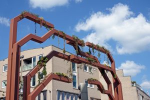 In close cooperation between the client (the municipality of Doetinchem), the designer and Wopereis the winning design was adapted into a model that was possible to implement: the Hamburgerpoort as it now is. Wopereis has engineered the steel structure via Tekla, produced and implemented it. The steel structure consists of 350 x 350 mm tubes and is approximately 10 meters high with the “Hamburgerpoort” name on it. The tubes are equipped with plastic plant containers, which are supplied with water through a computer-controlled system, installed by Wopereis.