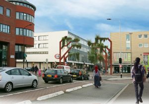 Kunstwerk moet op deze plek worden verwijderd. Als je nabij de ABN AMRO de weg oversteekt naar C&A m.b.v. de verkeerslichten heb je, als burger met een beperking, geen uitzicht over het fietspad en kunt dus worden aangereden. Dat kan niet de bedoeling van zo’n kunstwerk zijn. Derhalve: verwijderen!