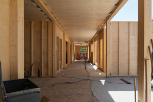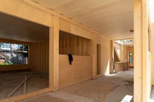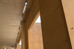 Voor het IKC in Westdorpe wordt gekozen voor een volledig duurzame houtconstructie. De gangzone is opgebouwd uit LVL-kolommen en -liggers, met daaromheen een houtskeletbouwwand. Binnen deze structuur zijn volledig geïsoleerde CLT-boxen toegepast als verdiepingsvloeren en dakopbouw.