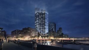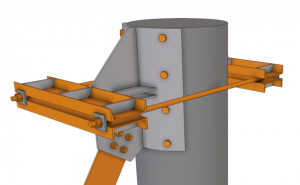 Przedmiotem projektu jest stal wsporcza dla masztów tymczasowych na wschodniej elewacji Amway Grand Plaza Hotel. Budynek ten przechodził kompleksową renowacje, w tym wymianę szkła na elewacji. Prezentowane konstrukcje to zestaw dwóch niezależnych platform, zawieszonych na kotwach osadzonych w istniejącej konstrukcji żelbetowej budynku. Największym wyzwaniem podczas pracy na modelu okazały się blachy montażowe, w tym blachy zakrzywione, dopasowane do kształtu okrągłego słupa żelbetowego.