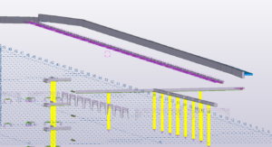 Het model is op werkelijke coördinaten systeem getekend (oorsprong in Parijs). Door toevoeging van een basispunt was het mogelijk om in Tekla bij de modeloorsprong te kunnen tekenen, wat de prestaties aanzienlijk verbeterd.