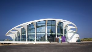 Op het strand in Scheveningen, ter hoogte van de keerlus aan het eind van de Gevers Deynootweg, heeft J.P. van Eesteren een iconisch strandpaviljoen met drie verdiepingen gerealiseerd. Het ontwerp is van Bureau voor Stedebouw en Architectuur Wim de Bruijn BV en is geïnspireerd op de vormen van het strand en de zee. De bestemming? Een uniek entertainment attractiepunt als het begin van de nieuwe boulevard op Scheveningen.’