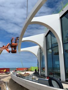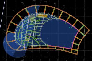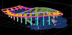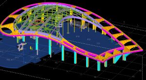 De staalconstructie van het gebouw met het gewelfde dak en de glooiende borstwering op het dak terras is getekend in Tekla. Voor de engineering is met meerdere partijen samengewerkt. Zo zijn de trappen via modelsharing uitgewerkt door Wolter Tijdink. Het uitwerken van sierkroon van gekromde spanten die rondom het gebouw staan is in Rhino gedaan door CIG. Het model van de spanten is vervolgens via 3D dwg aan het tekla model toegevoegd.