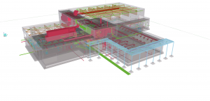 Tractebel stond met dit ontwerp voor een multi-disciplinaire opdracht. Een project dat vraagt om een geïntegreerde BIM aanpak. Tekla Structures werd van bij de start ingezet als modelleer software voor de structuur (zowel beton, staal als hout), maar ook als coördinatiemodel waarbij de verschillende 3D discipline modellen werden samengebracht. Zo werden onder andere 3D IFC modellen van architectuur en diverse technieken (HVAC, elektriciteit, sanitair, riolering en waterbehandeling) in het model ingeladen.