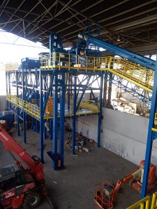 Konstrukcja stalowa zaprojektowana jako instalacja wsporcza dla maszyn do oddzielania i czyszczenia materiałów przeznaczonych do recyclingu. Składa się z 2 części, które są połączone ze sobą kładką i taśmociągiem. Podstawowym ustrojem nośnym dla całej konstrukcji są sztywne ramy oraz układy stężeń w kierunku prostopadłym.