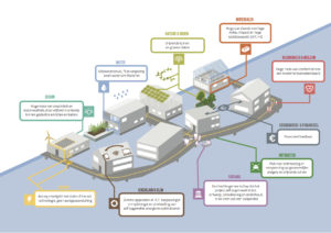 Ze wekken hun eigen elektriciteit op met fotovoltaïsche zonnepanelen. Elke woning heeft een grote accu waarin tijdelijke overschotten kunnen worden opgeslagen.