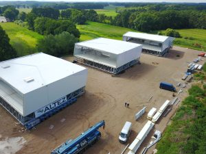 A weight of approximately 125 tons is hoisted per module.
